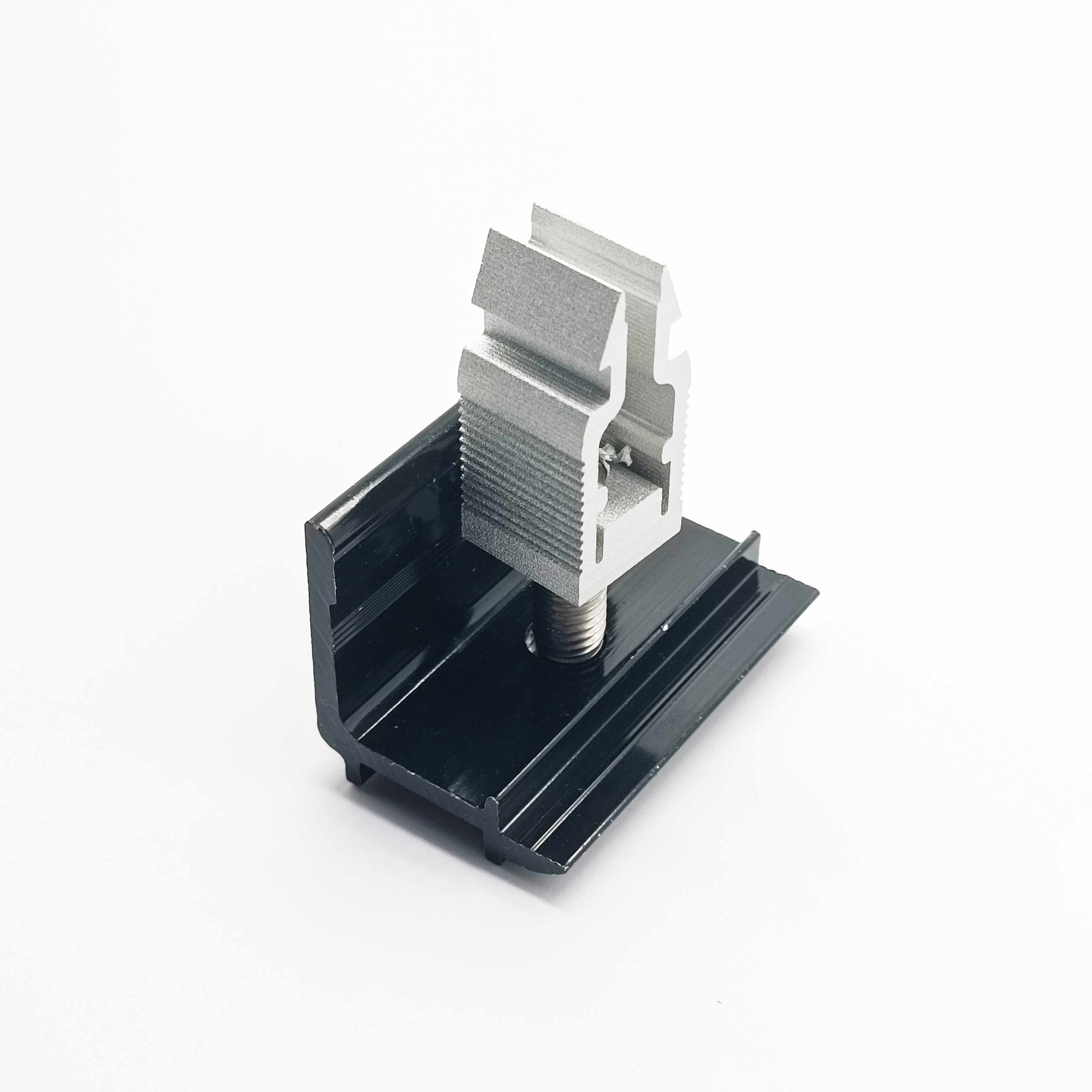 Zacisk środkowy i zacisk końcowy to akcesorium służące do łączenia szyn aluminiowych i paneli słonecznych, które zwykle składa się z dwóch narożników ze stopu aluminium. Zacisk środkowy i zacisk końcowy może zapewnić dodatkowe wsparcie i stabilność, aby zapewnić stabilność panelu słonecznego w pionie lub poziomie.